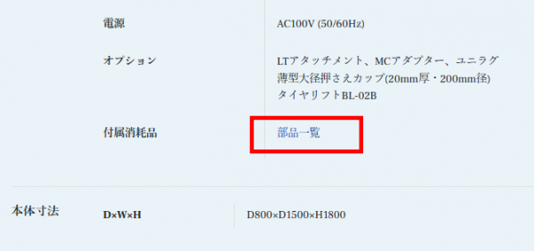 赤枠で囲んでいます「部品一覧」をクリックしていただきますとPDFファイルのダウンロードが可能です。