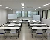 また、「座学研修室」も設けており、プロジェクター等を用いた研修を行うことができます。実習スペースとは別の階のため、2班に分けた研修でも、他班の音を気にすることなく知識の習得に集中できます。