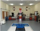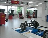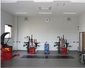 「実習スペース」では、弊社専門の講師が、各種機器の取扱方法を丁寧に説明しながら、タイヤチェンジャー、ホイールバランサー、安全囲いなど、標準作業手順に基づいた実習トレーニングを行います。受講者の方々には、作業中に起こり得るトラブルの原因や回避方法などを、この研修を通してご理解いただくことが可能です。